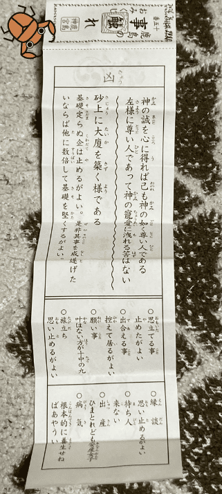すると、おみくじが「凶」。